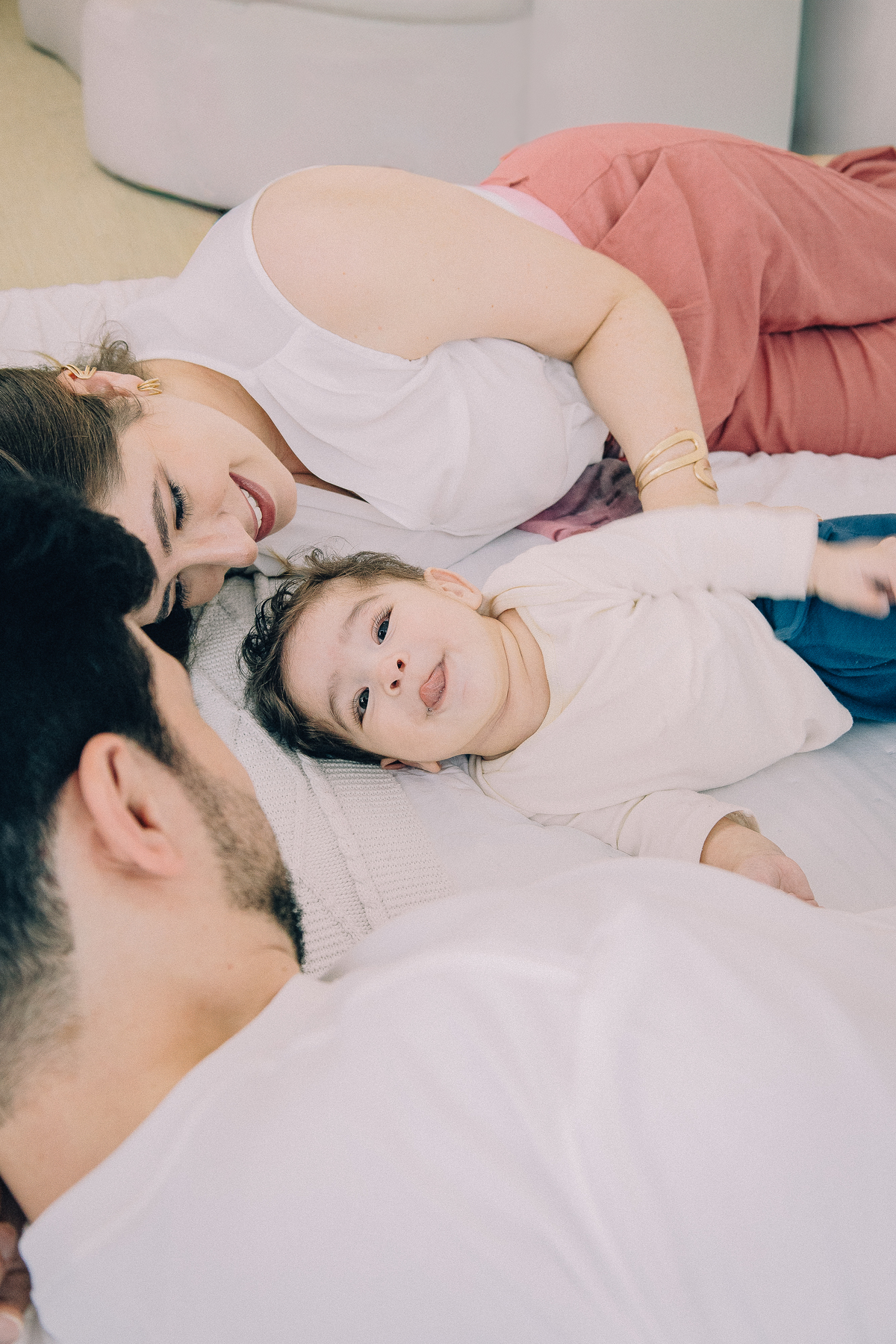 Escolhemos o estúdio para proporcionar mais conforto ao Levi, especialmente nessa época do ano mais quente. Entre brincadeiras, trocas de olhares e abraços, o que mais transbordou foi o amor dessa família linda.