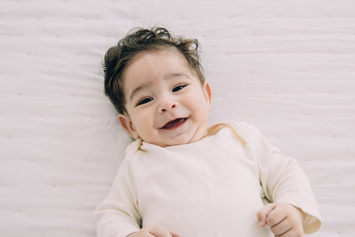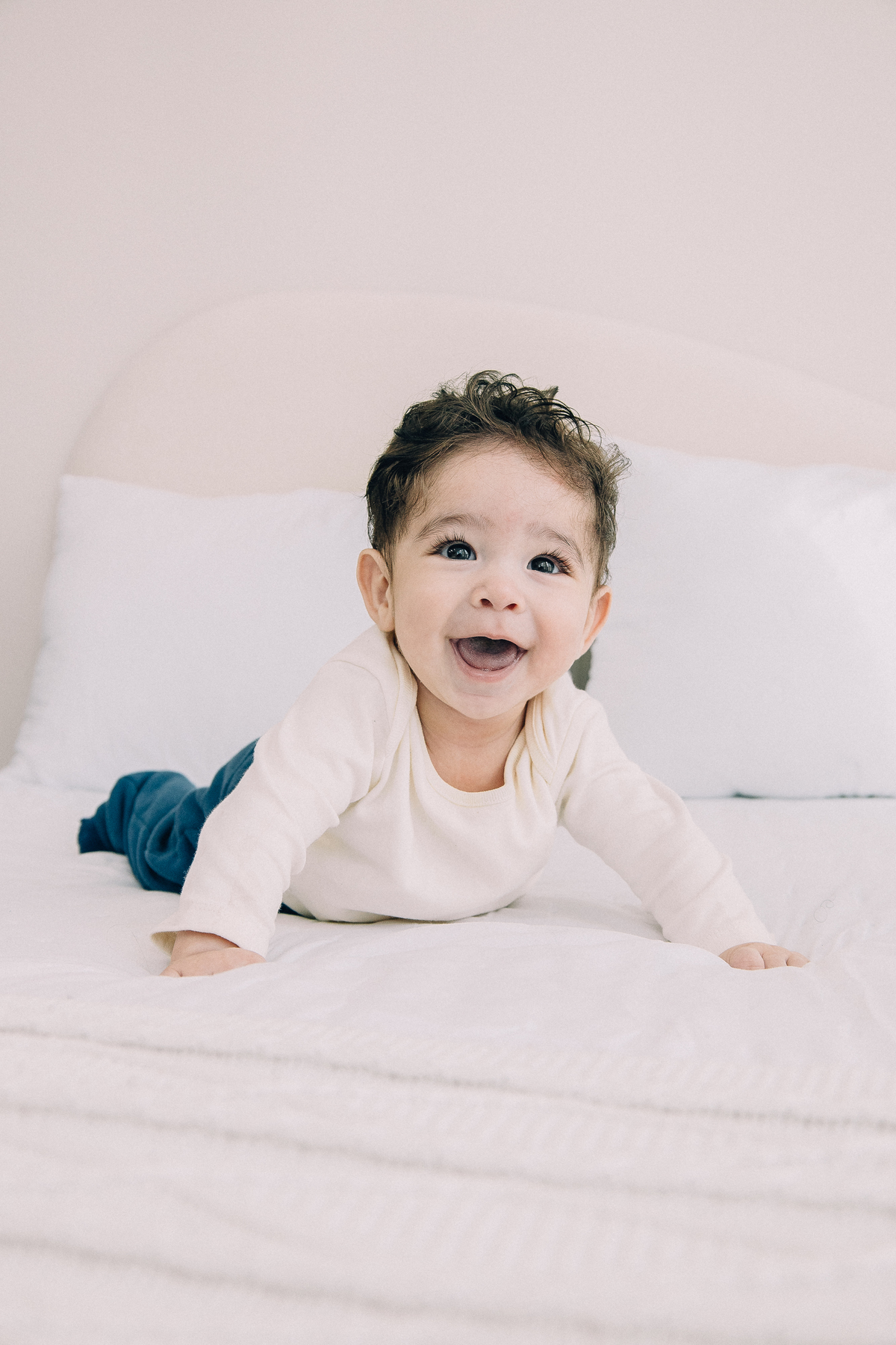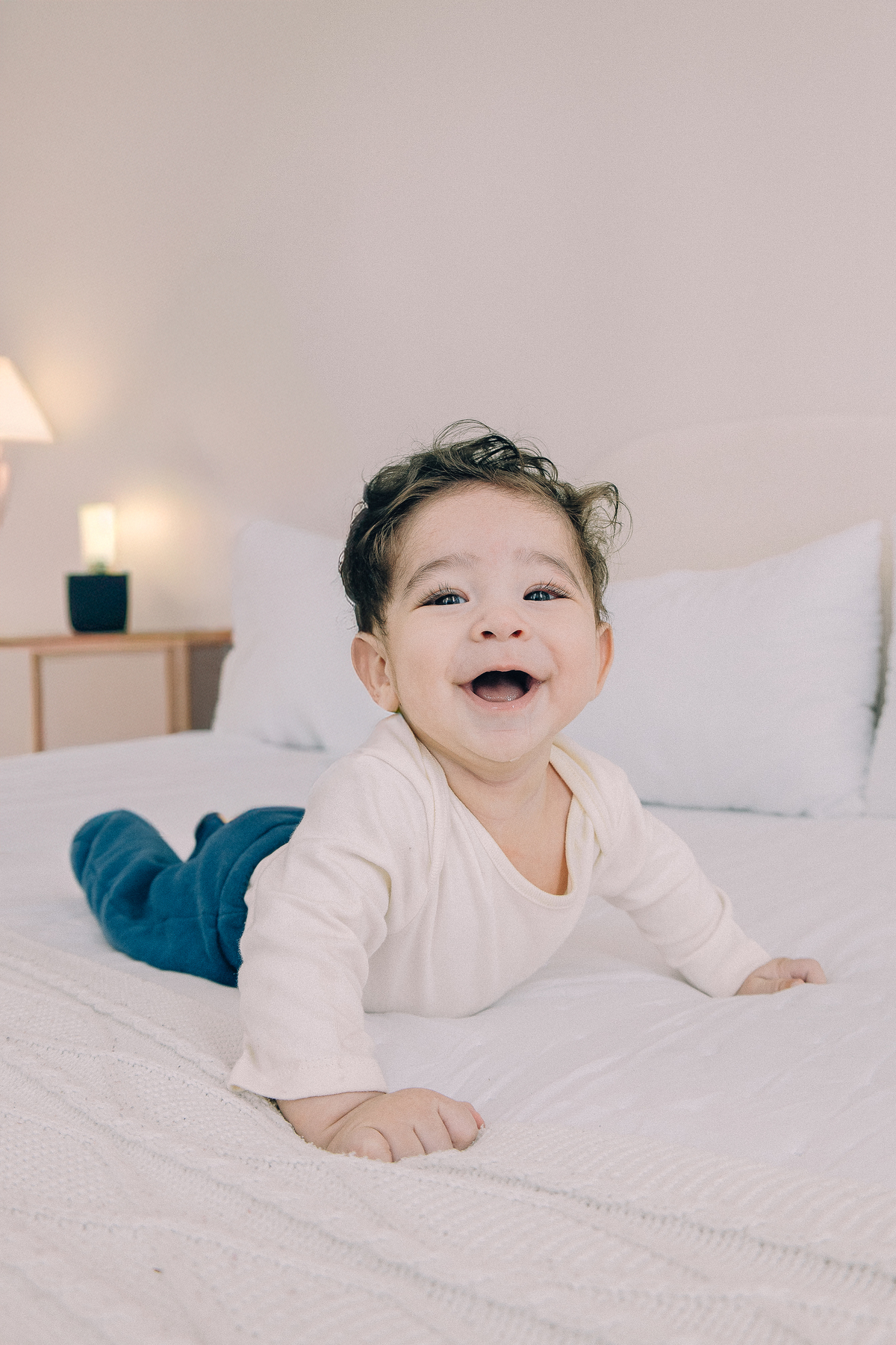 Com apenas seis meses, ele já espalha sorrisos por onde passa — um garotinho risonho, cheio de luz e energia boa, que fez do estúdio um verdadeiro cenário de amor.