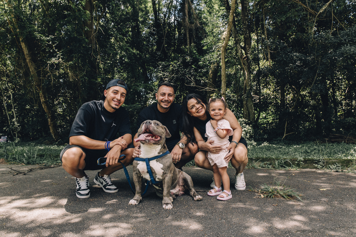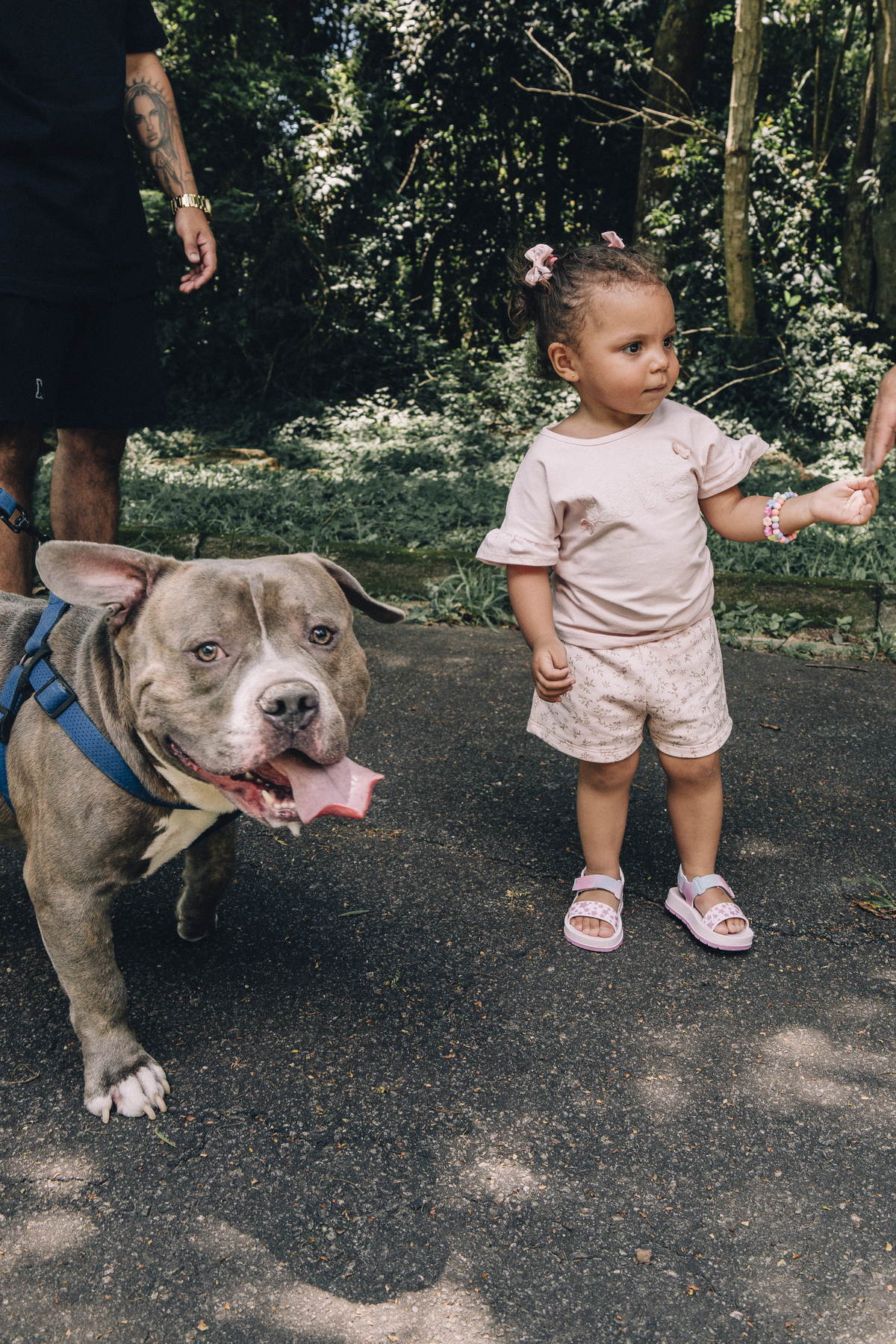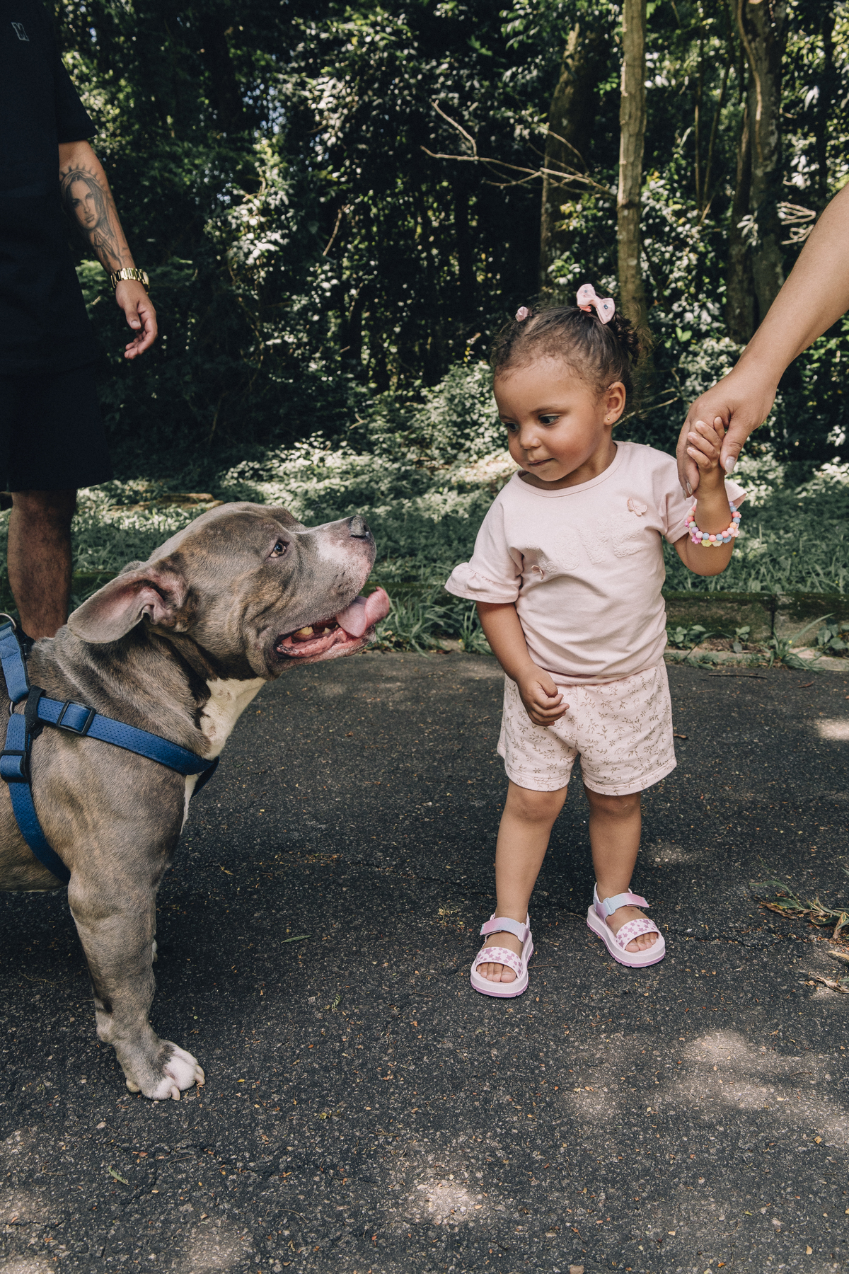 Entrar em contato com a Vivi foi como reencontrar alguém em outra estação da vida. Eu já a conhecia, mas agora ela vinha com uma família formada, com histórias somadas, com amor multiplicado. Conheci a Iris, carinhosamente chamada de pipoquinha. Conheci o Dom, esse pitbull doce que carrega no corpo a força e no olhar a mansidão. Conheci o Guilherme, filho do Alex, e percebi que madrasta é só uma palavra — porque de “má” a Vivi não tem absolutamente nada.