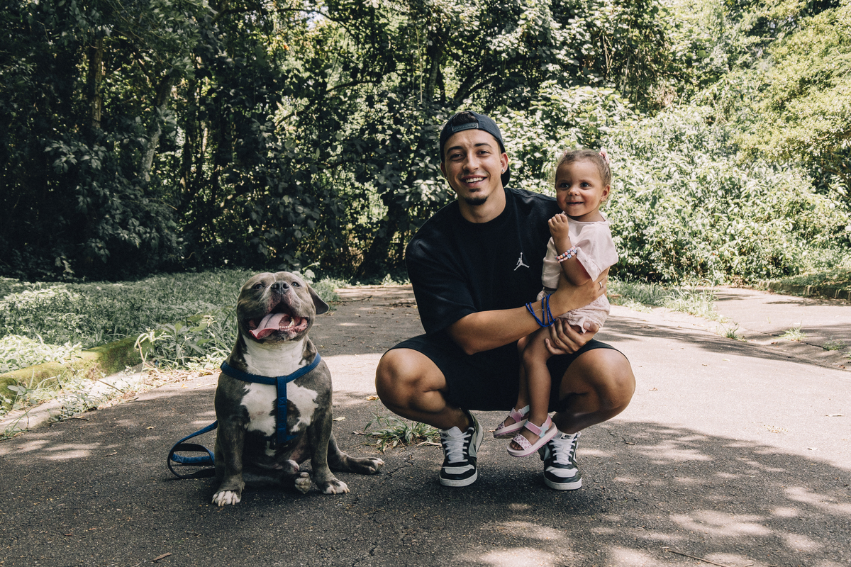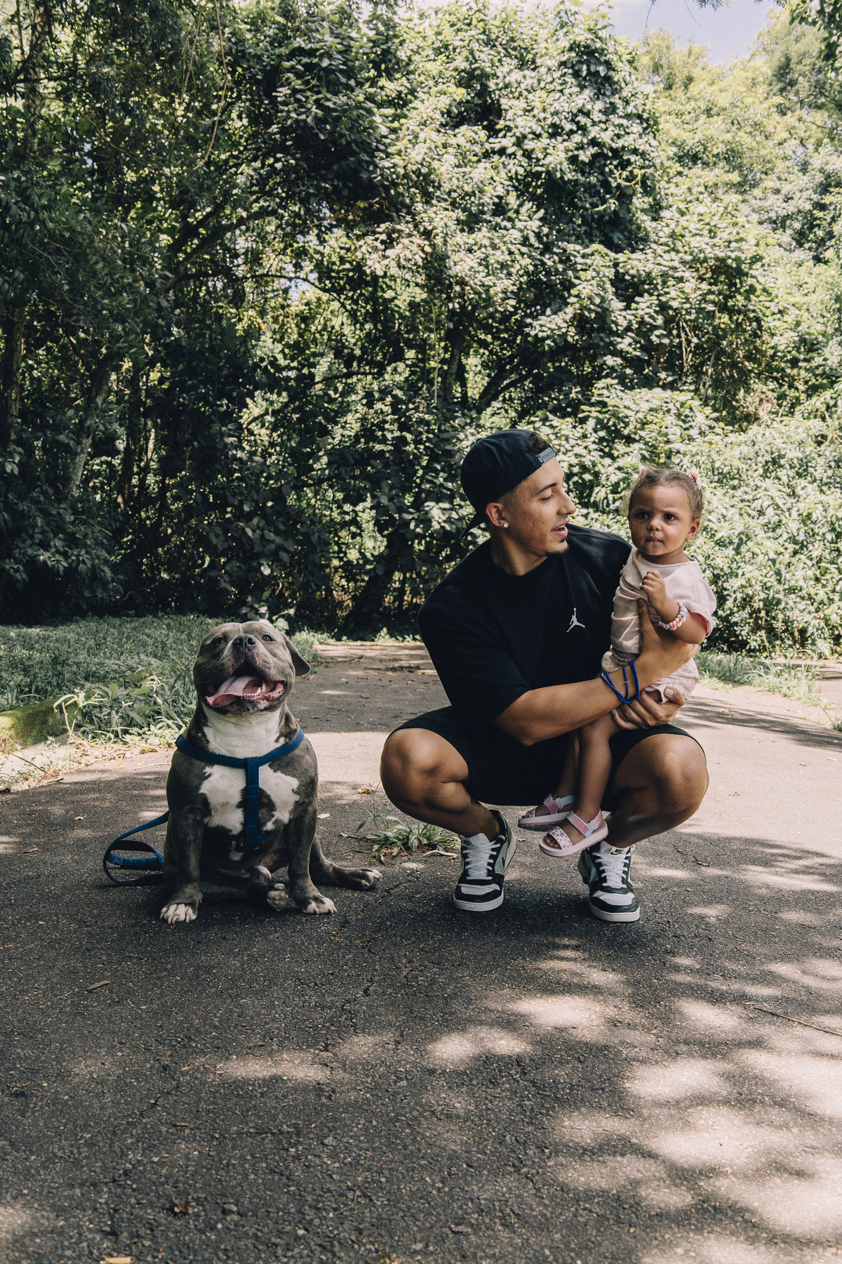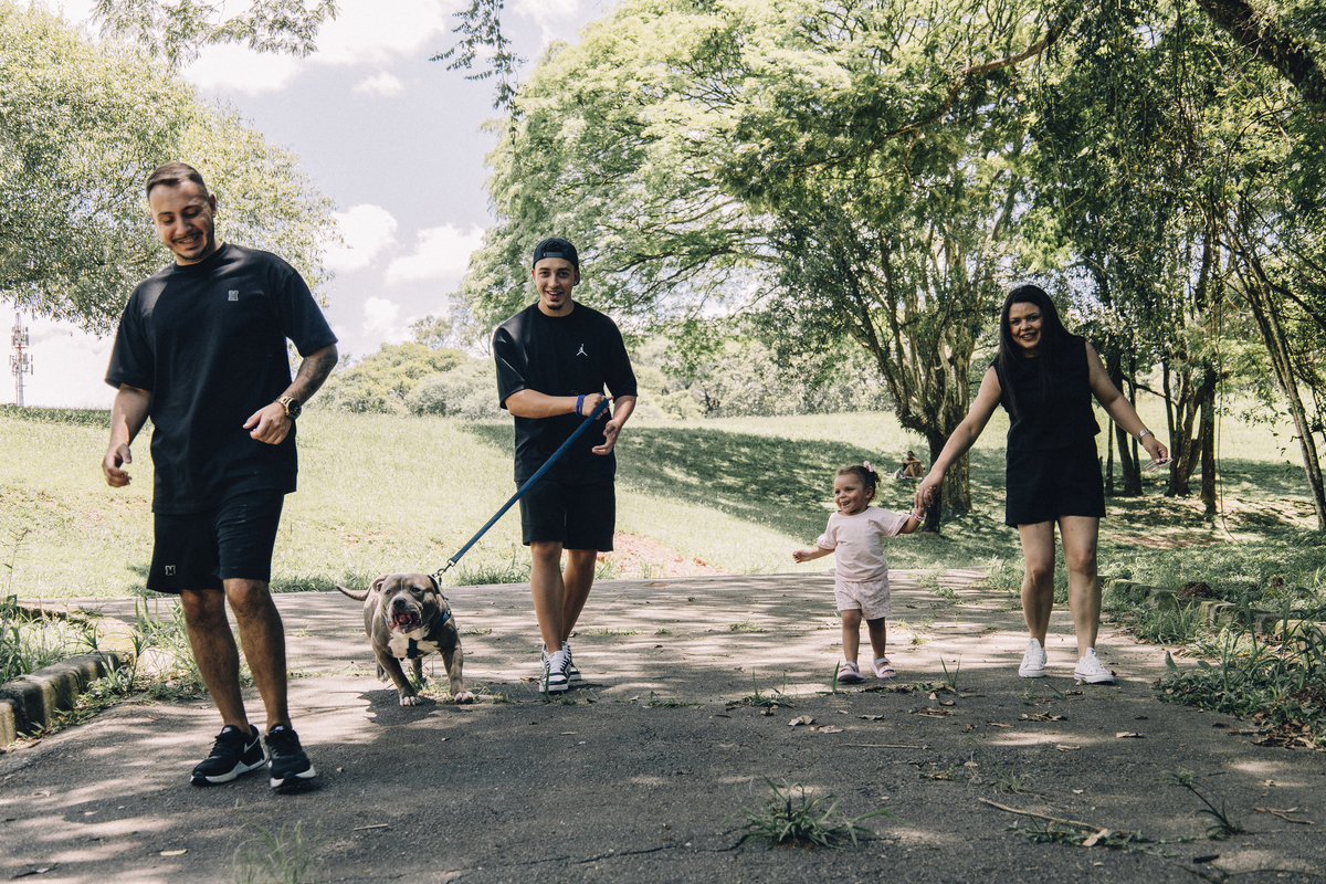 Entrar em contato com a Vivi foi como reencontrar alguém em outra estação da vida. Eu já a conhecia, mas agora ela vinha com uma família formada, com histórias somadas, com amor multiplicado. Conheci a Iris, carinhosamente chamada de pipoquinha. Conheci o Dom, esse pitbull doce que carrega no corpo a força e no olhar a mansidão. Conheci o Guilherme, filho do Alex, e percebi que madrasta é só uma palavra — porque de “má” a Vivi não tem absolutamente nada.