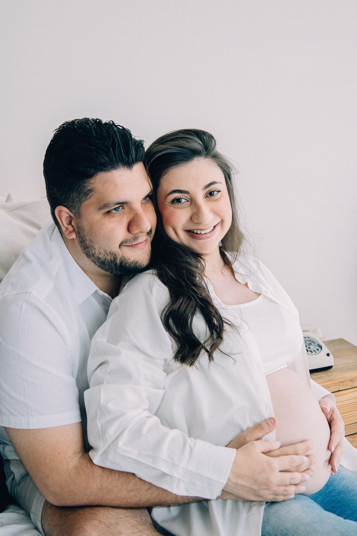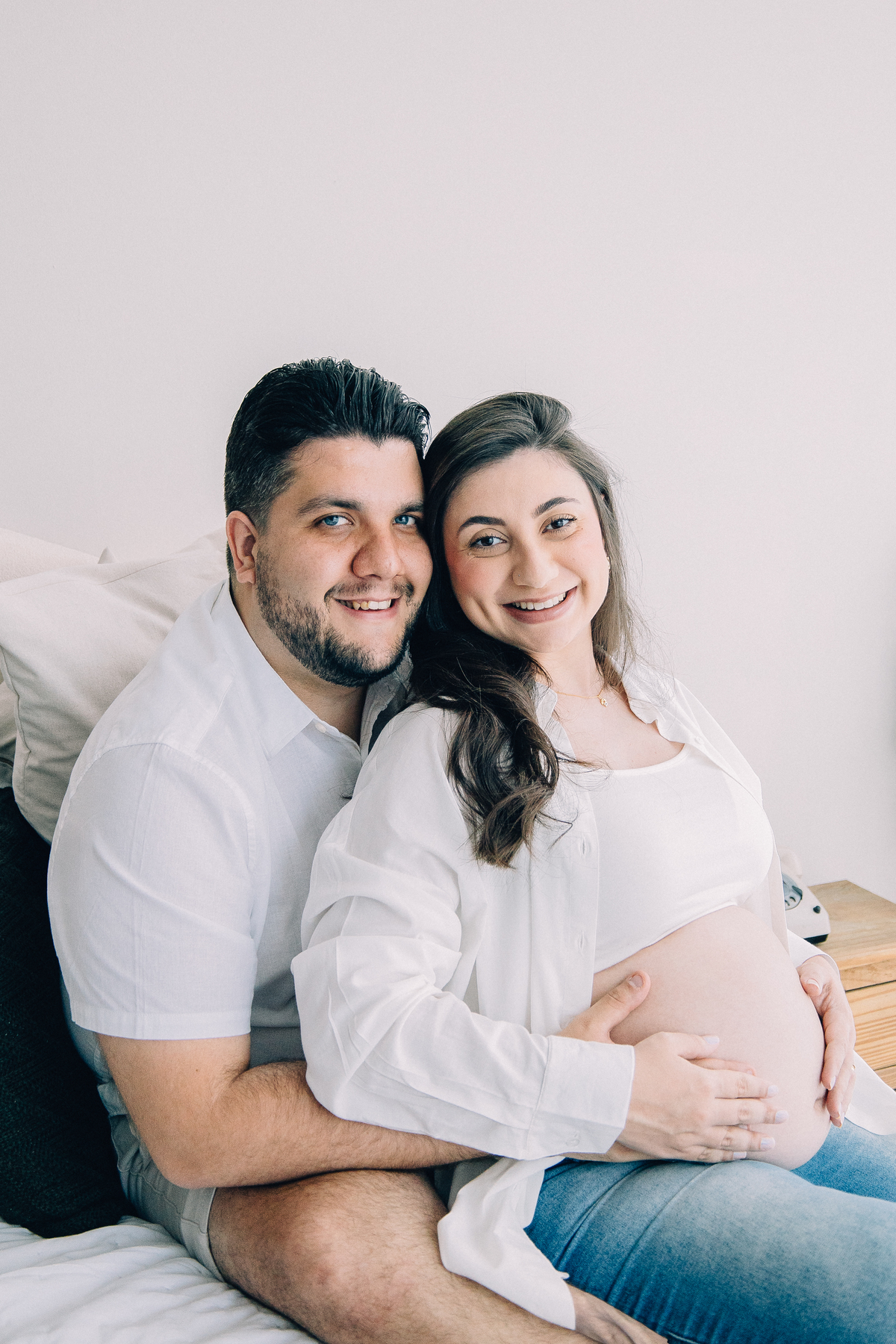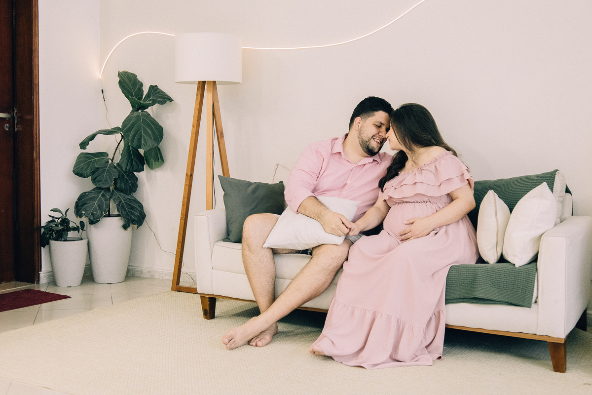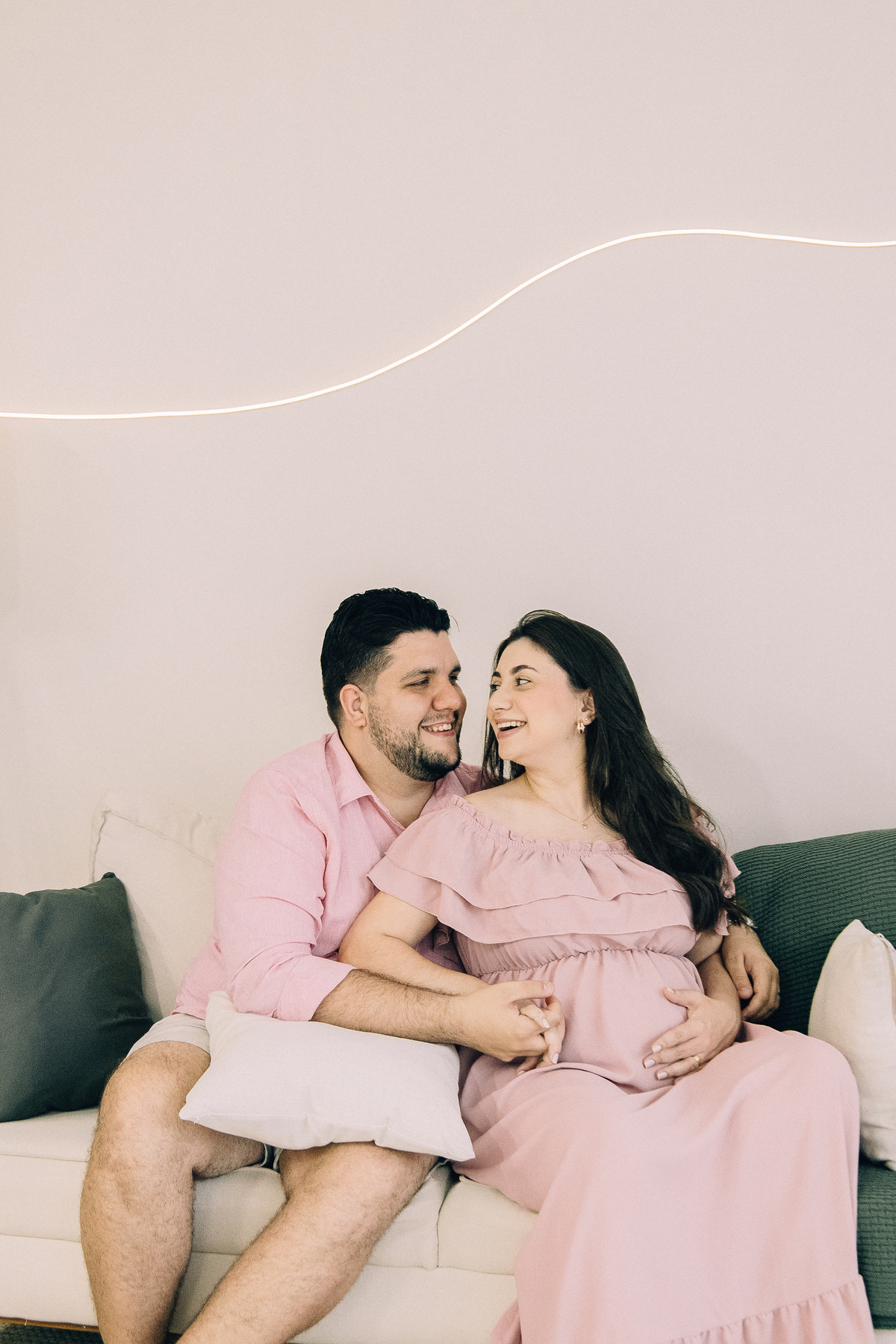 O ensaio foi feito em estúdio, com uma proposta cheia de aconchego, conforto e aquele ar de “lar doce lar”. Cada clique carrega o amor tranquilo, a cumplicidade e a alegria que sempre vi nos dois.