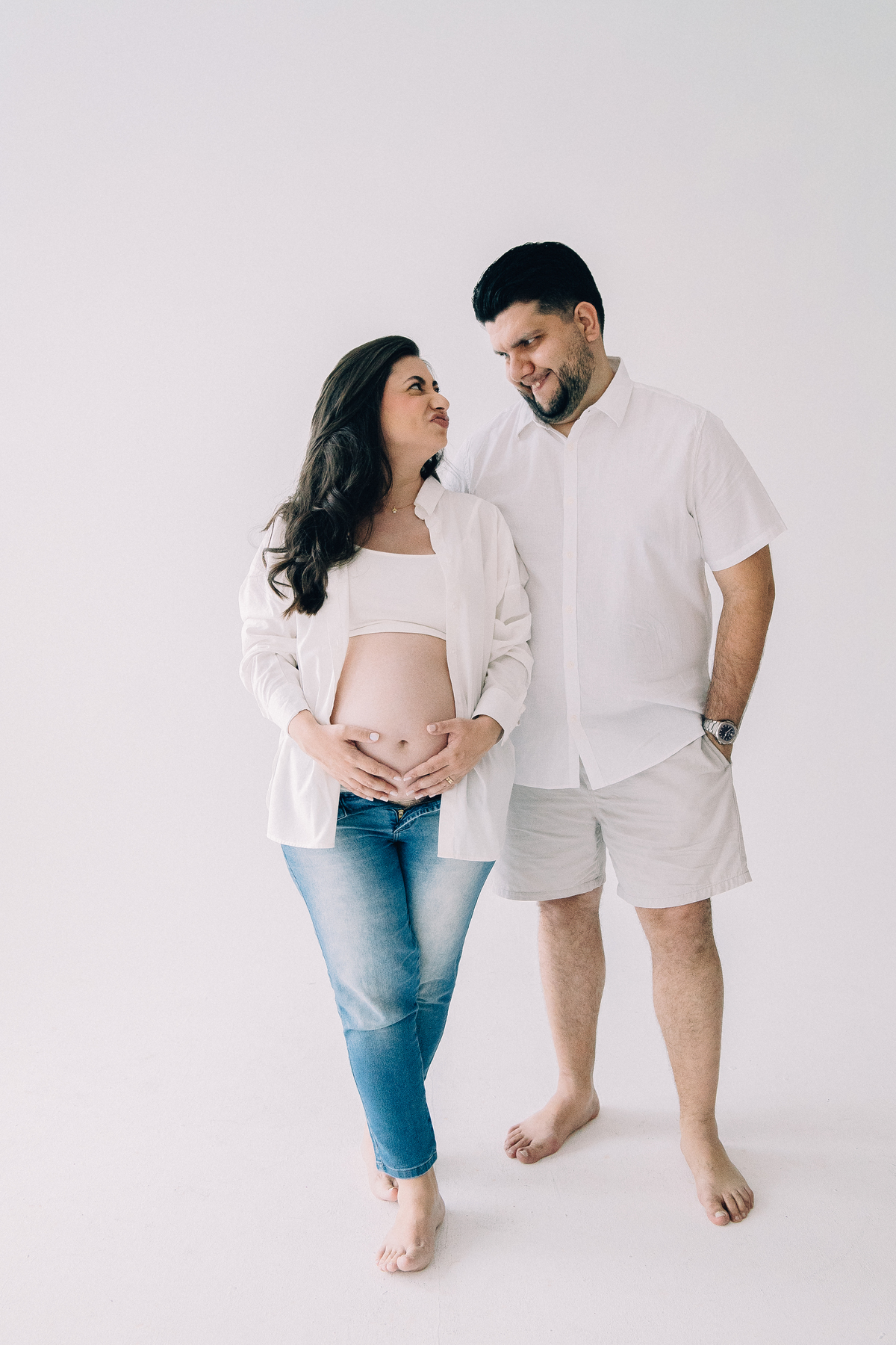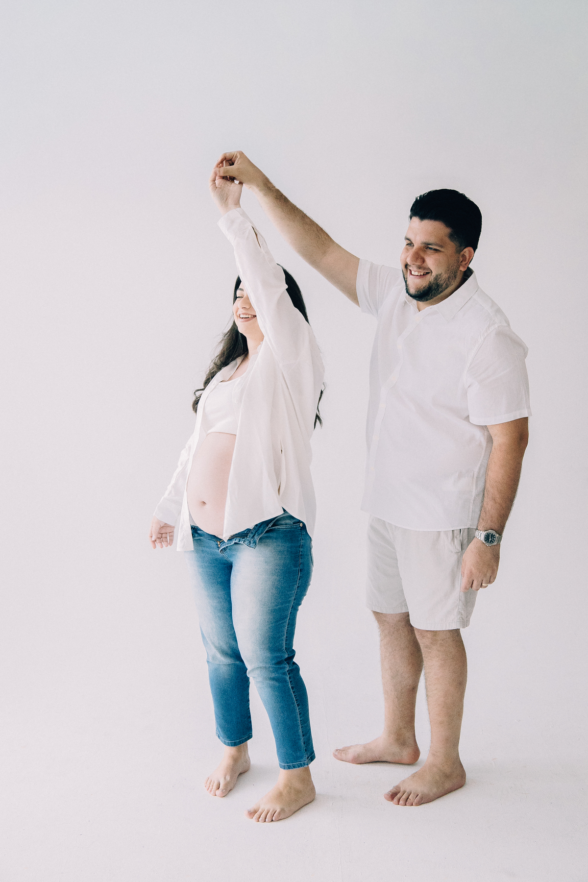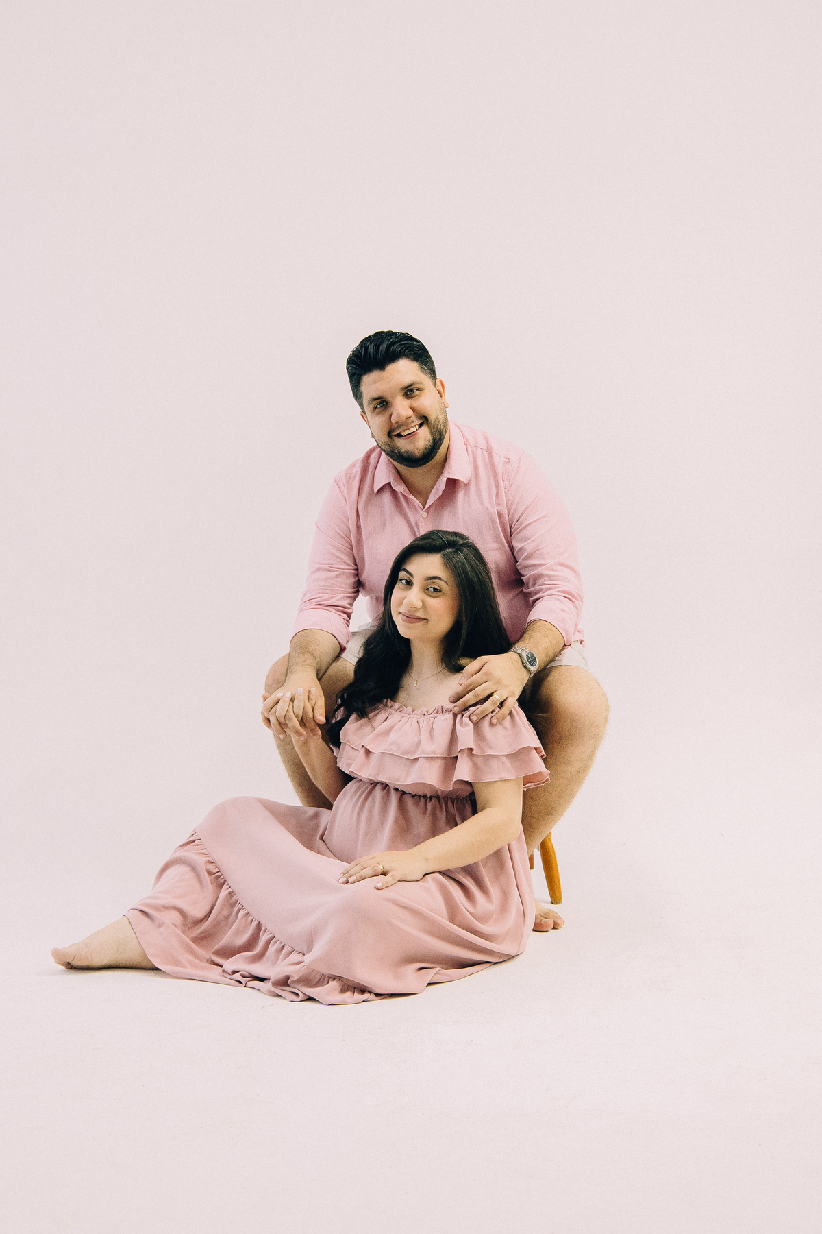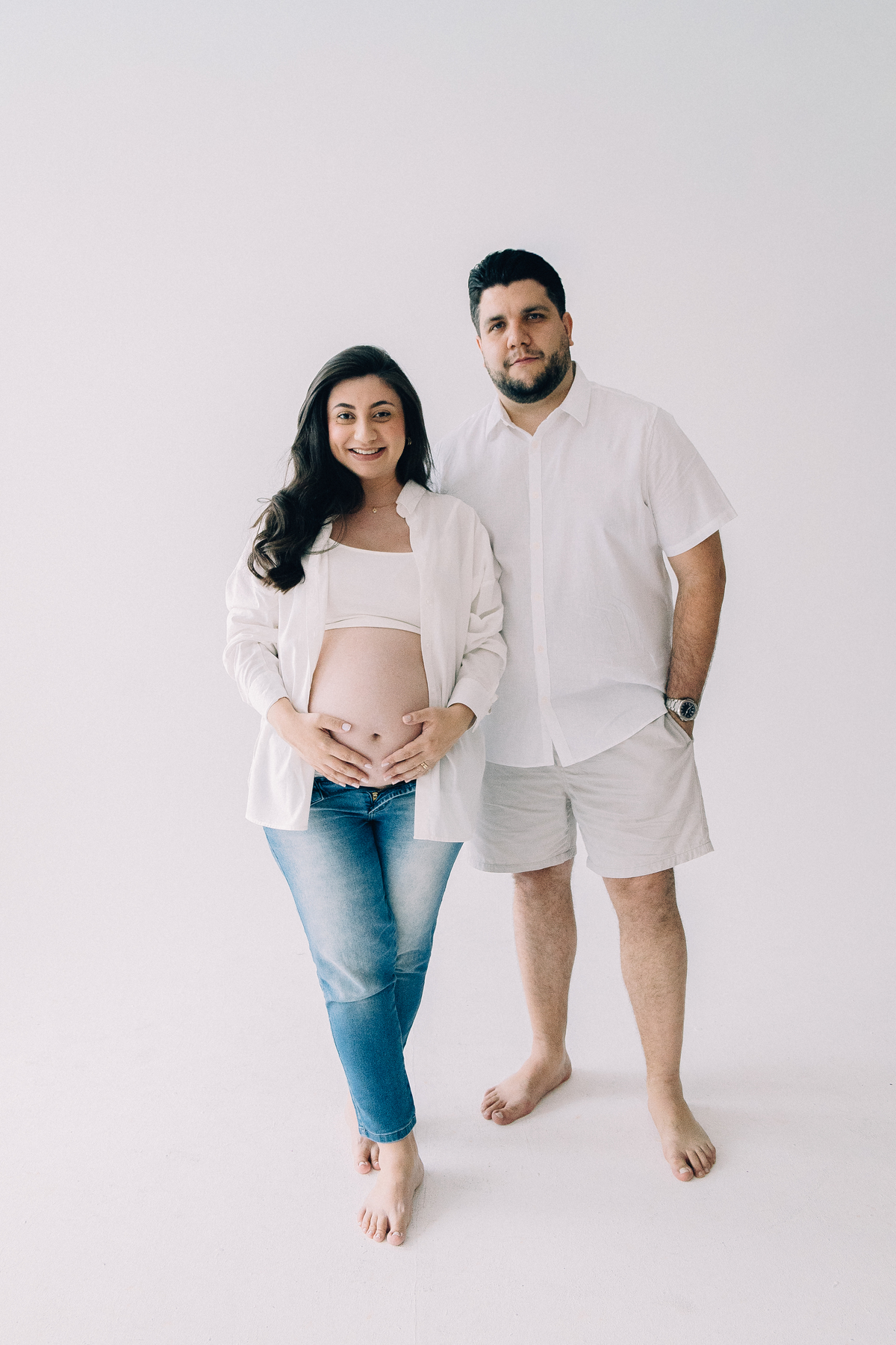 O ensaio foi feito em estúdio, com uma proposta cheia de aconchego, conforto e aquele ar de “lar doce lar”. Cada clique carrega o amor tranquilo, a cumplicidade e a alegria que sempre vi nos dois.