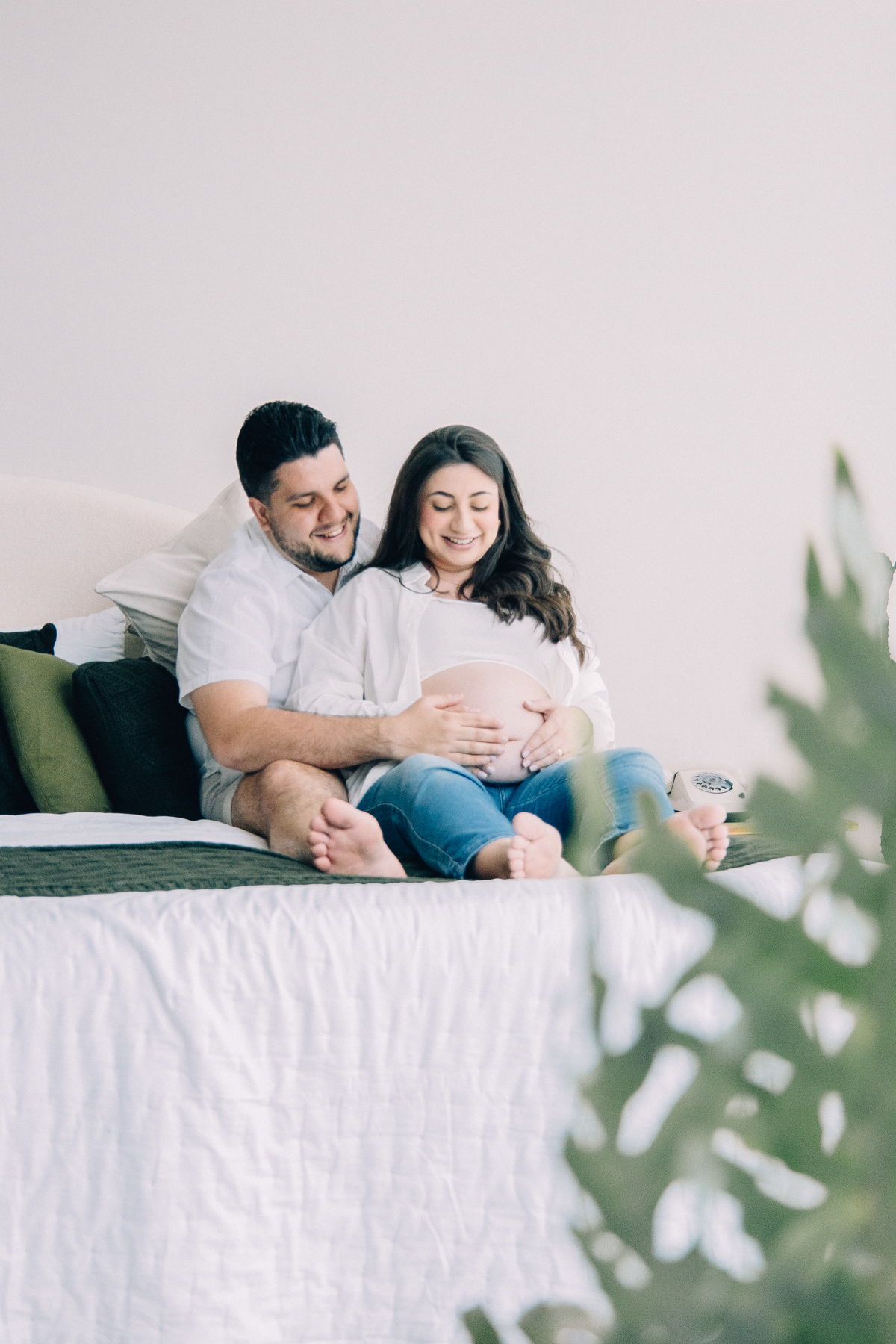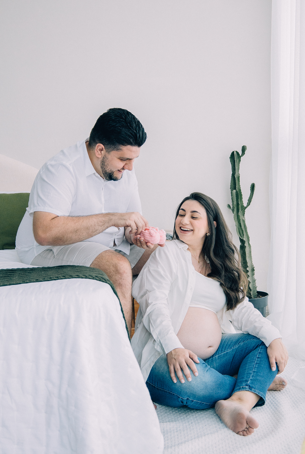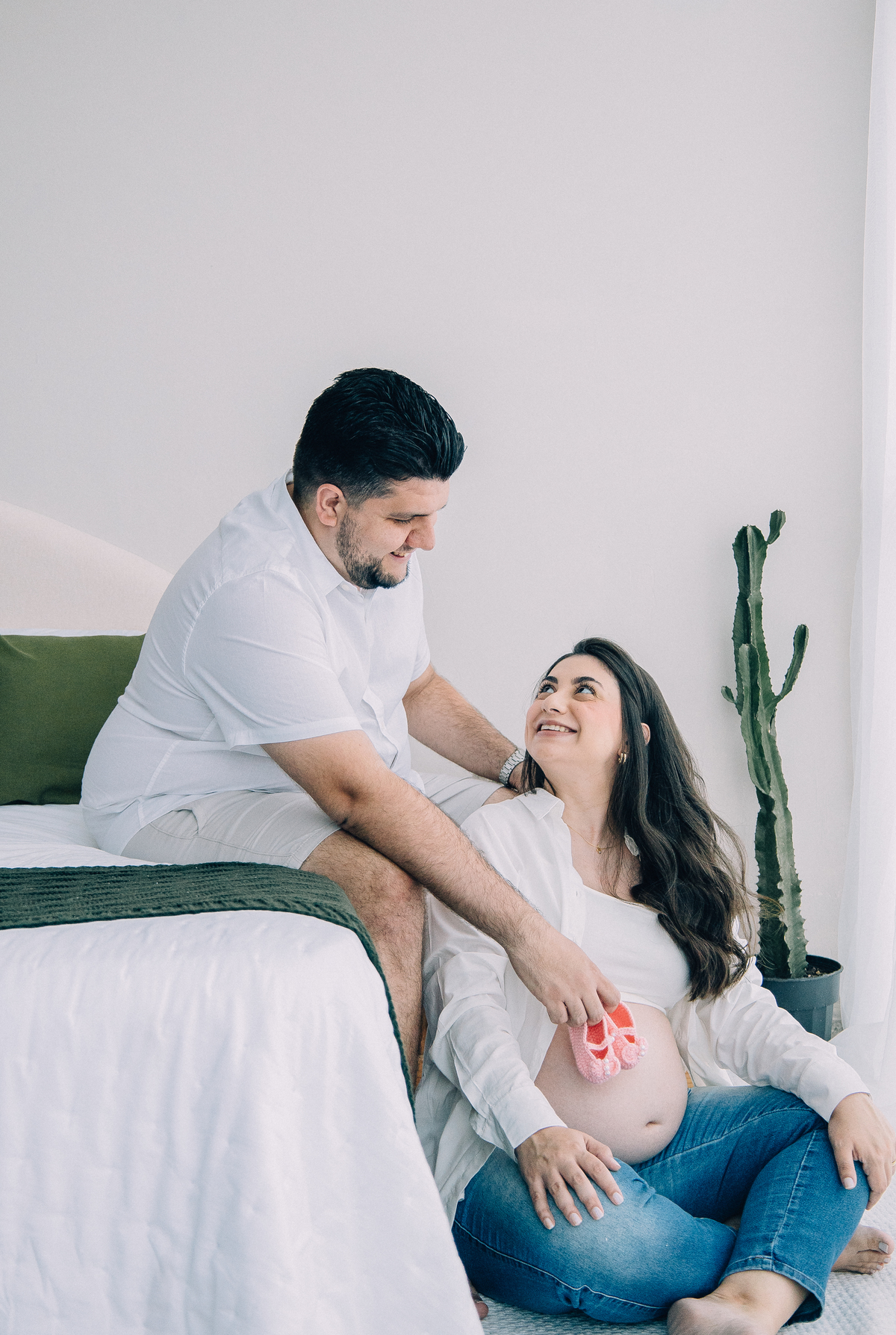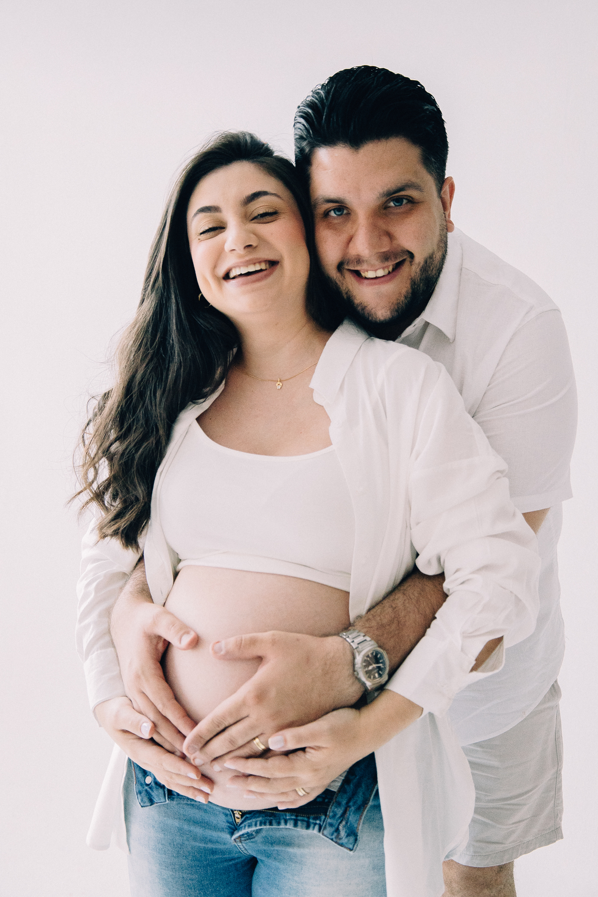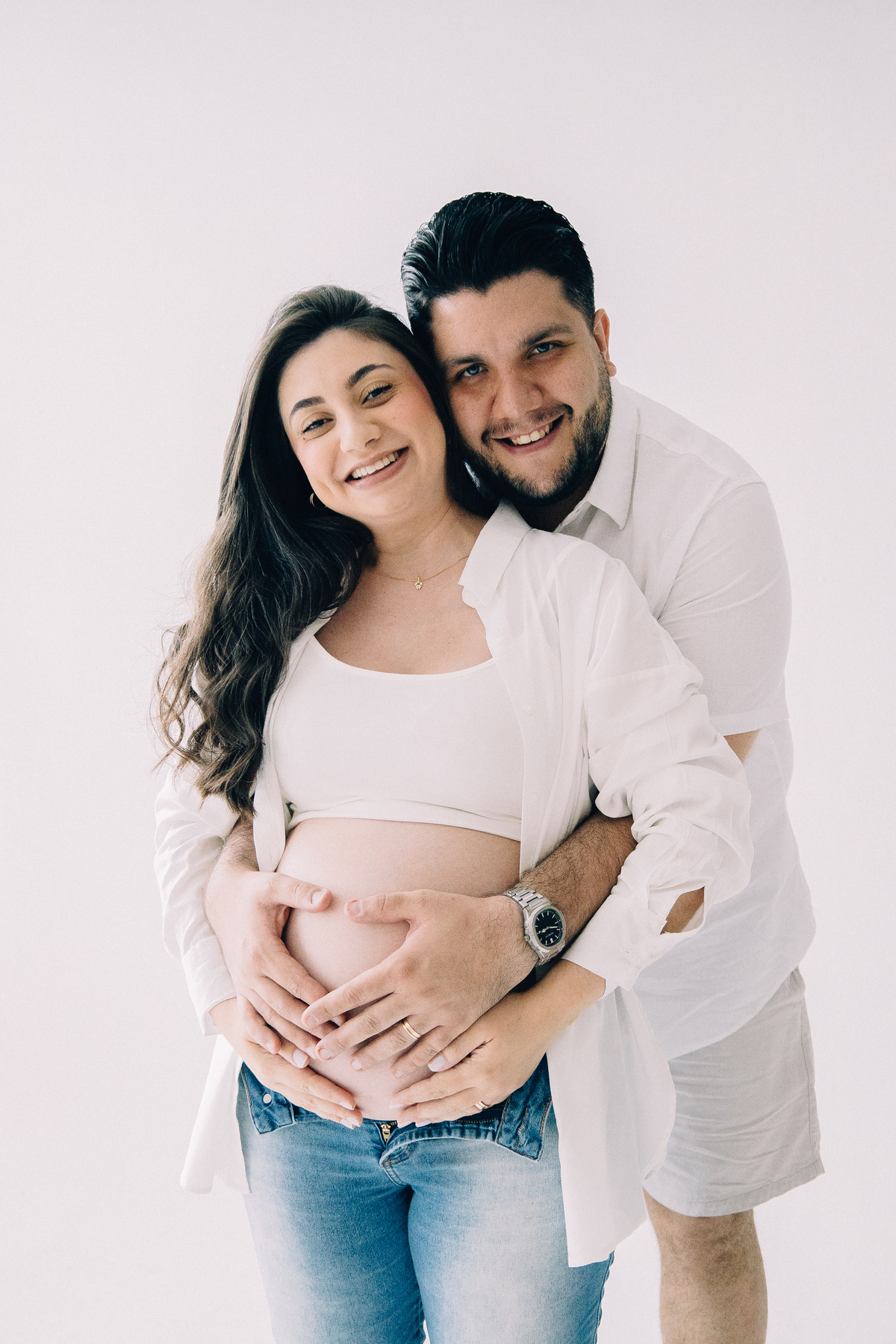 O ensaio foi feito em estúdio, com uma proposta cheia de aconchego, conforto e aquele ar de “lar doce lar”. Cada clique carrega o amor tranquilo, a cumplicidade e a alegria que sempre vi nos dois.
