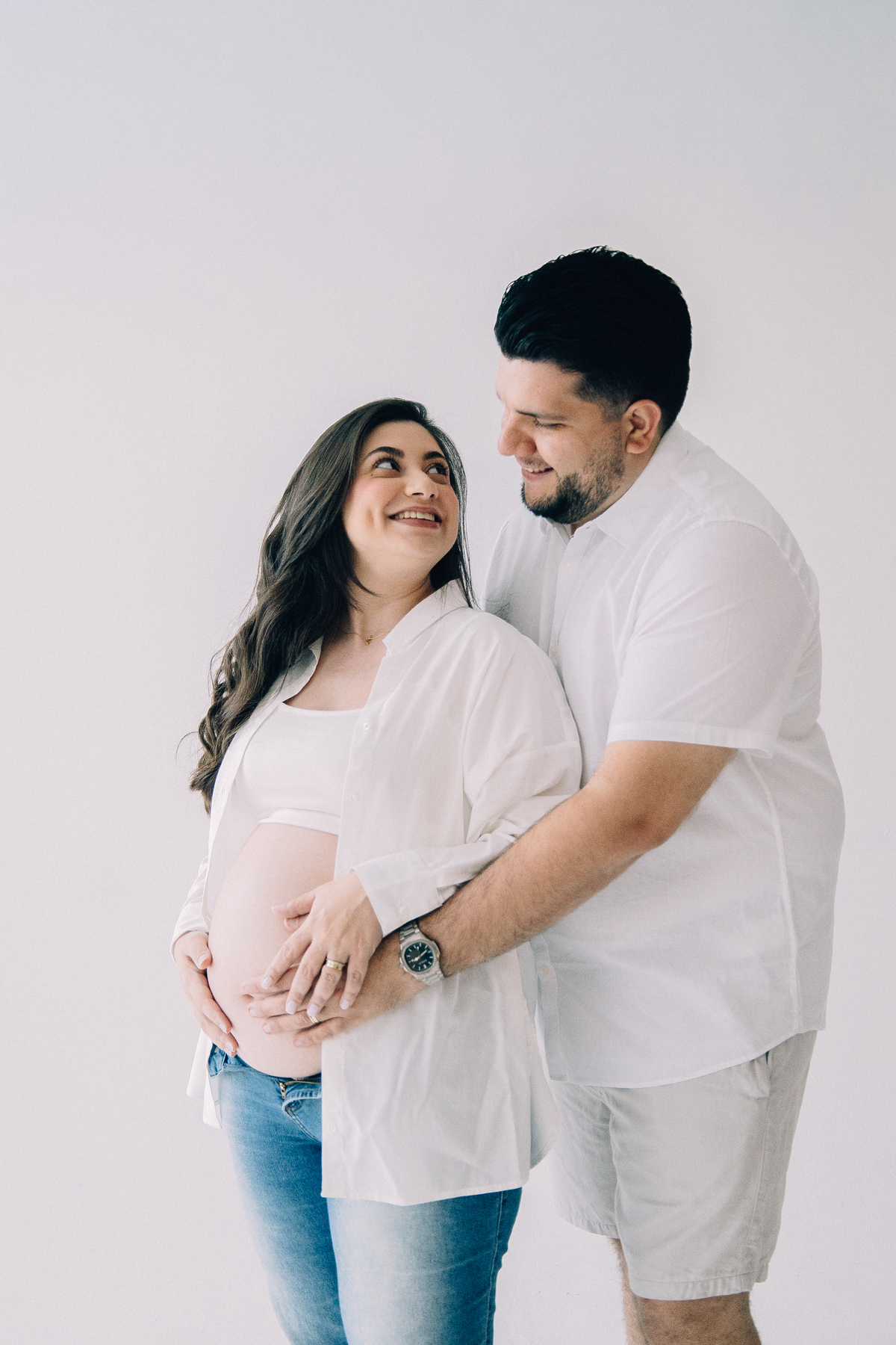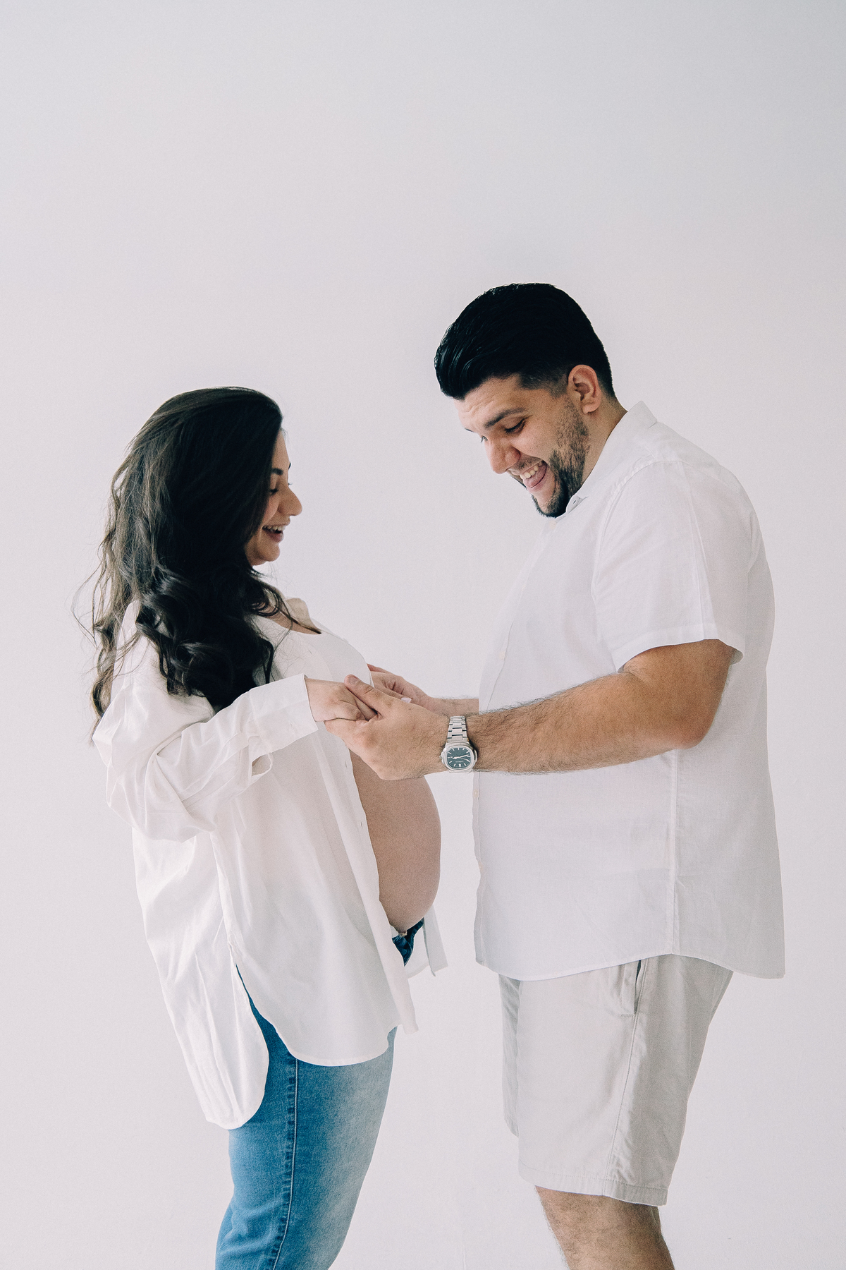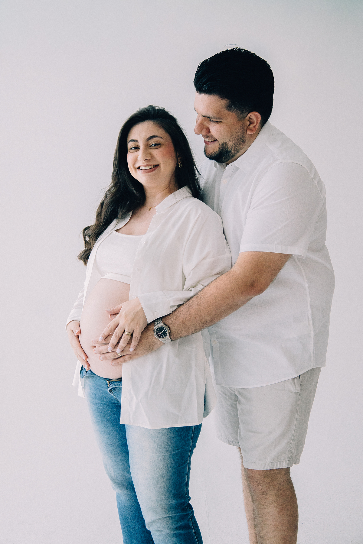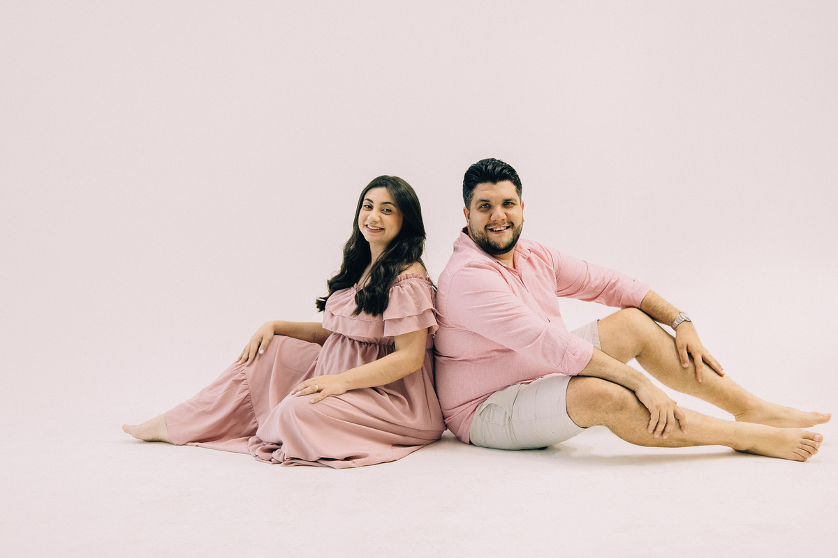 O ensaio foi feito em estúdio, com uma proposta cheia de aconchego, conforto e aquele ar de “lar doce lar”. Cada clique carrega o amor tranquilo, a cumplicidade e a alegria que sempre vi nos dois.